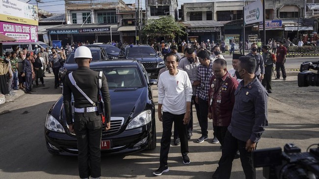 Presiden Joko Widodo tiba mengunjungi Pasar Pagi Batuphat Timur, Lhokseumawe, Aceh, Jumat (10/2/2023). Dalam kunjungan tersebut Presiden meninjau langsung kondisi pasar dan memberikan sejumlah bantuan kepada masyarakat.