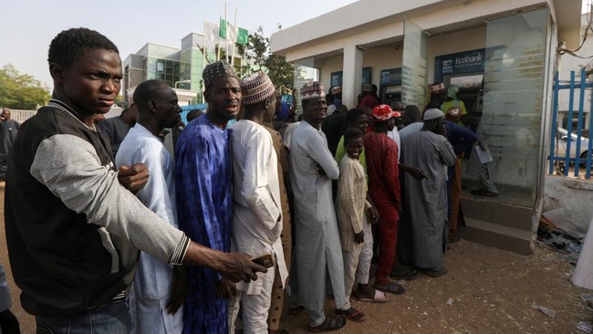 Nigeria - Situasi terkini di Nigeria tengah memanas imbas stok uang tunai langka. Hal ini membuat antrean di sejumlah ATM mengular panjang.