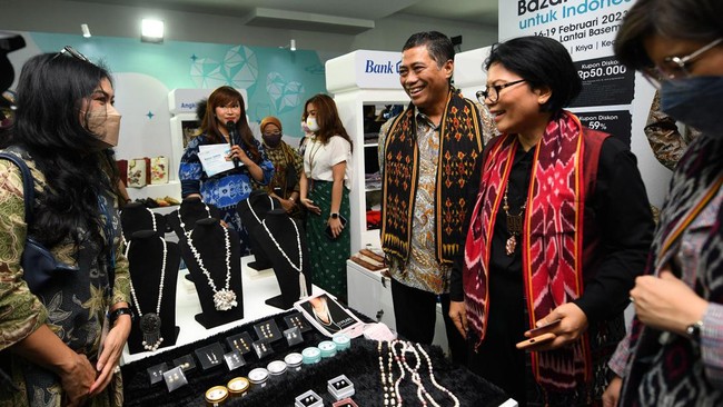 Jakarta - Guna mendorong UMKM Indonesia & membangkitkan belanja masyarakat, Kementerian BUMN-Kementerian Koperasi & UMKM menggelar Bazar Belanja Produk di Sarinah Jakarta
