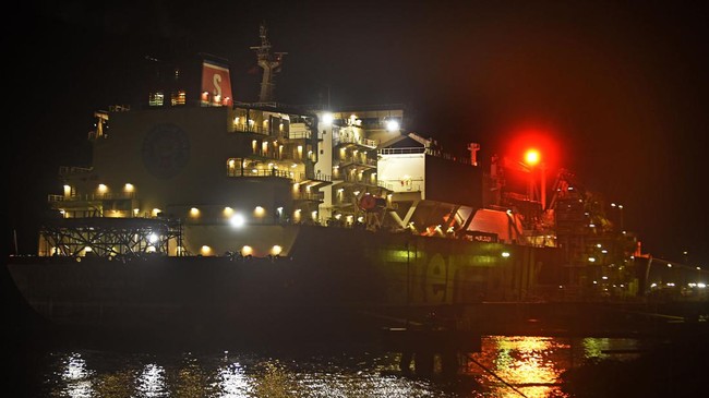 Penampakan Kapal Tanker LNG Inggris Bongkar Muat di Aceh