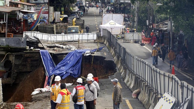 Ngeri! Penampakan Ruas Jalan Jembatan Cikereteg Amblas