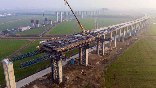Potret Terkini Konstruksi Jembatan Sungai Yangtze yang Lagi Dibangun