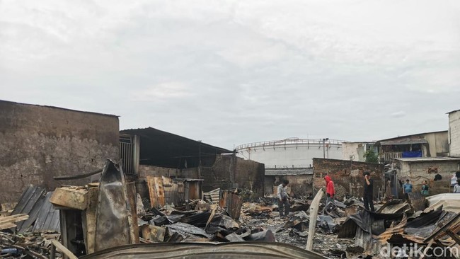 Jakarta - Dampak kebakaran Depo Pertamina Plumpang Jumat malam (3/3/2023) nampak hari ini, Sabtu (4/3). Mulai dari rumah hancur hingga motor & mobil hangus terbakar.