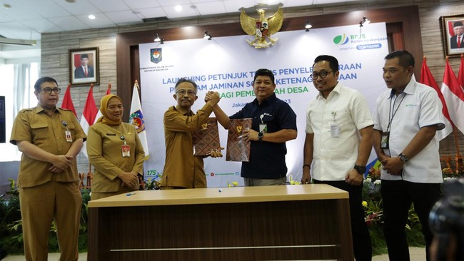 Jakarta - BPJAMSOSTEK menjalin kerja sama dengan Kementerian Dalam Negeri dalam program jaminan sosial ketenagakerjaan bagi pemerintah desa, Senin (6/3/2023).