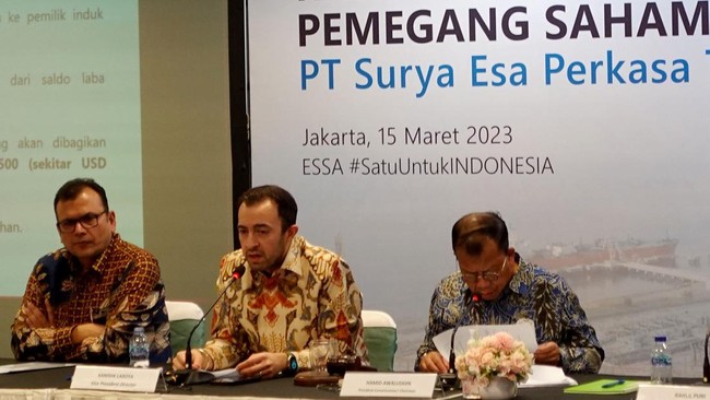 Jakarta - PT Surya Esa Perkasa Tbk (ESSA) emiten sektor Energi dan Kimia dengan kilang LPG (Liquefied Petroleum Gas) dan pabrik Amoniak menyebar dividen Rp 775,2 M