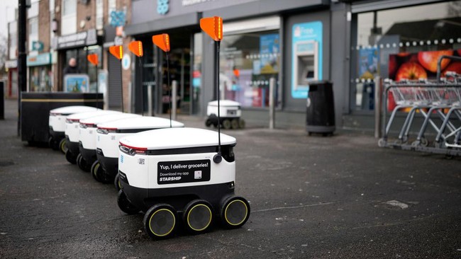 Manchester - Perkembangan teknologi di dunia kian maju. Salah satunya di Inggris, ada robot yang dapat mengantarkan pesanan dari supermarket ke rumah.