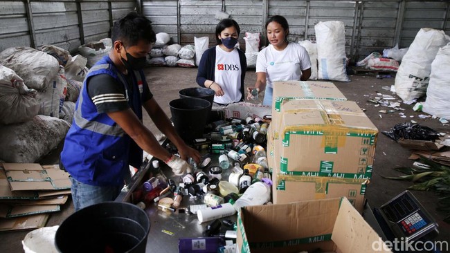 Bekasi - Bank DBS Indonesia dan Waste4Change bekerjasama dalam mengatasi masalah sampah di Indonesia. Mereka melakukan pengolahan sampah di Waste4Change, Bekasi, jabar.