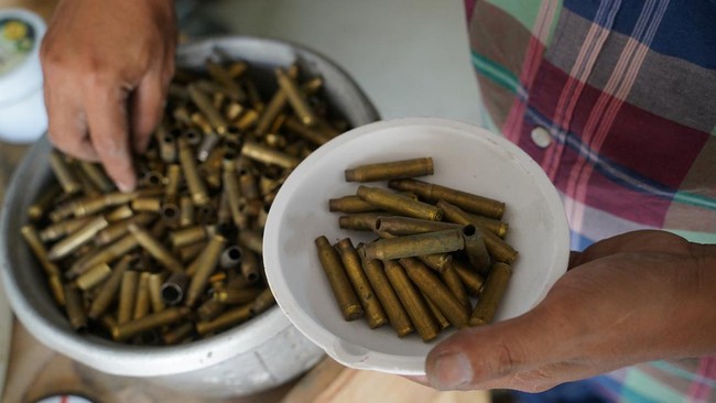Kamboja - Seorang tukang emas di Kamboja mengubah selongsong peluru menjadi perhiasan cantik. Hal itu sudah dilakukannya selama puluhan tahun. Begini hasil karyanya.
