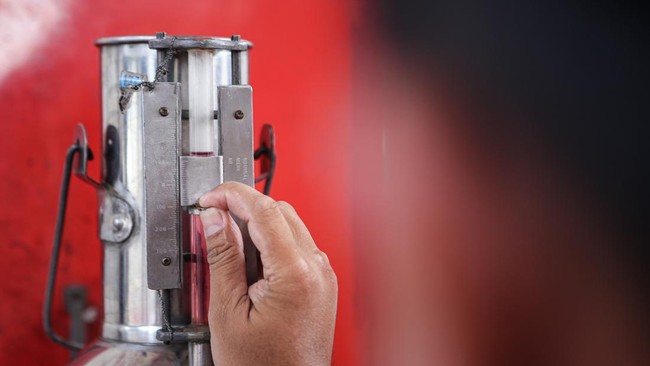 Tangerang - Disperindagkop UKM Kota Tangerang melakukan uji tera alat-alat takar sejumlah SPBU yang berada di jalur mudik. Ini untuk memastikan ketepatan takaran.