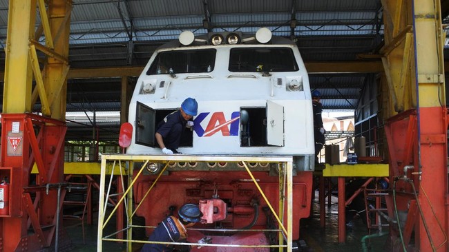 Jakarta - PT Kereta Api Indonesia melakukan perawatan lokomotif dan rel kereta api. Hal ini dilakukan untuk menghadapi masa angkutan Lebaran 2023.