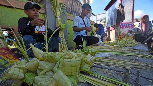 Jakarta - Jelang tradisi Kupatan atau kenduri ketupat, penjualan kulit ketupat di Pasar Rau Kota Serang, Banten, meningkat.