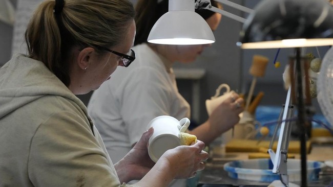 Jakarta - Perajin tembikar di Inggris melanjutkan tradisi berabad-abad lalu dengan membuat mug untuk menandai penobatan Raja Charles. Begini potretnya.