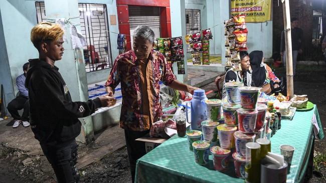 Pedagang melayani pembeli di sebuah warung musiman jalan Raya Klari, Karawang, Jawa Barat, Rabu (19/4/2023).