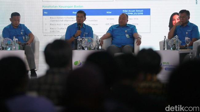 Jakarta - BPJS Ketenagakerjaan gelar public expose di Plaza BPJAMSOSTEK Jakarta, Jum'at (12/5). BP Jamsostek sepanjang 2022 membayar klaim peserta Rp 49,04 triliun.
