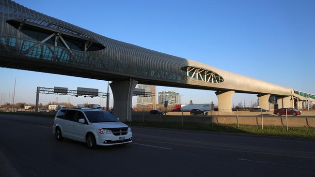 Kanada - Pickering Pedestrian Bridge di Kanada memecahkan rekor dunia sebagai jembatan pejalan kaki dalam ruangan terpanjang. Begini penampakannya.