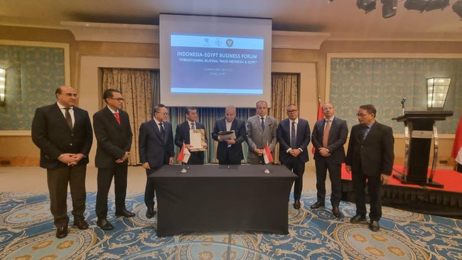 Mesir - Mendag Zulhas menyaksikan penandatanganan kerja sama imbal dagang antara pelaku usaha Indonesia dan pelaku usaha Mesir.