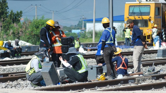 Bandung - PT KCIC segera melakukan uji fungsi Kereta Cepat Jakarta Bandung. Sebelum dilakukan uji coba, rel dilintasi kereta grinder.