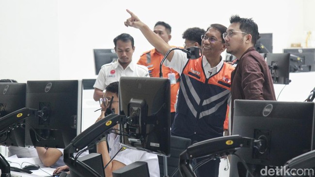 Jakarta - Direktur Utama KAI Didiek Hartantyo menunjukkan ruang pusat operasional (OCC) kereta LRT Jakarta di Bekasi, Jawa Barat, Rabu (7/6/2023).