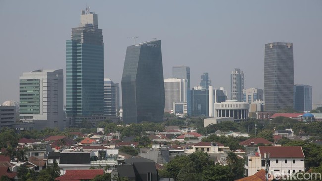 Suasana gedung bertingkat dikawasan Kuningan, Jakarta, Rabu (5/7/2023). Surplus APBN ini berarti pendapatan atau penerimaan lebih besar dibanding jumlah pengeluaran atau belanja pemerintah. Keseimbangan primer juga tercatat surplus Rp 390,5 triliun.