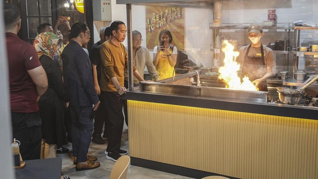 Bandung - Presiden Joko Widodo mengunjungi Pasar Kreatif Jawa Barat di Bandung, Selasa (11/7/2023). Pasar Kreatif tersebut merupakan fasilitas untuk mendukung UMKM.