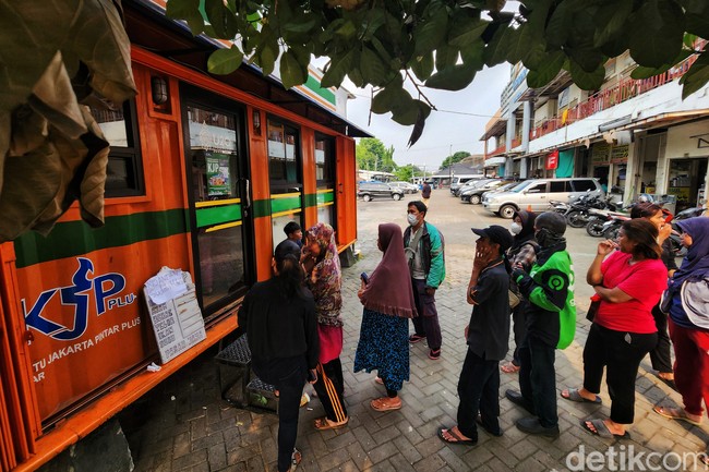Potret Penerima KJP Antre Sembako Murah di Manggarai