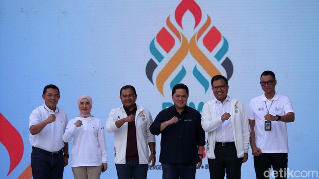 Jakarta - BUMN Fest 2023 resmi dibuka oleh Menteri BUMN Erick Thohir di Jakarta, Senin (17/7/2023). BUMN Fest diisi dengan kegiatan olahraga dan seni.