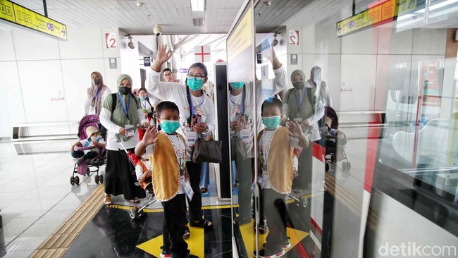 Jakarta - PT LRT Jakarta mengajak 30 anak-anak pengidap kanker dari Yayasan Kasih Anak Kanker Indonesia dan SLB Saraswati naik LRT Jakarta. Begini momennya.