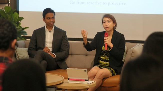 Shivom Sinha, Founder dan CEO Bunker, Jibrilia Alamsjah, Co-Founder dan Strategic Advisor Bunker saat memberikan keterangan pers di Jakarta, Selasa (1/8/2023).