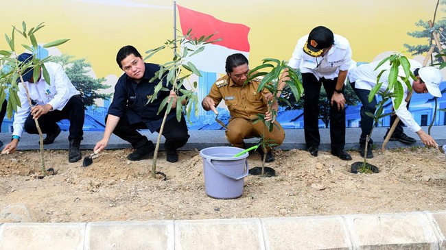 Menteri BUMN bersama Dirut Bank BTN serta Komisaris Utama Bank BTN Chandra M Hamzah, Penjabat Gubernur Banten Al Muktabar, Dirjen Perumahan Kementerian PUPR Iwan Suprijanto, Dirjen Pembiayaan Infrastruktur Pekerjaan Umum dan Perumahan Kementerian PUPR Herry Trisaputra Zuna dan Komisioner BP Tapera Adi Setianto melakukan penanaman pohon bersama.