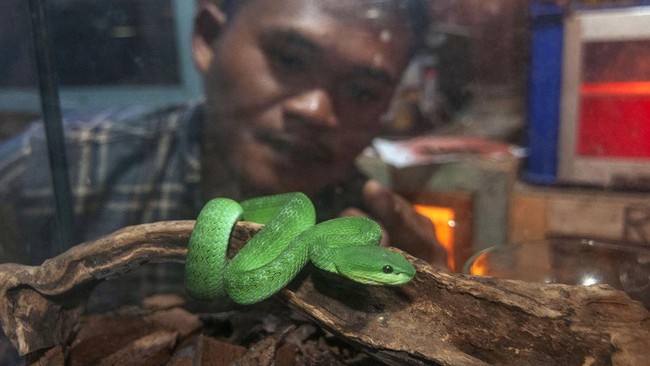 Boyolali - Berbagai jenis ular berbisa dibudidaya di Gladagsari, Boyolali, Jateng, Jumat (11/8). Ular itu kemudian dijual seharga Rp 150 ribu hingga Rp 2,5 juta per ekor.
