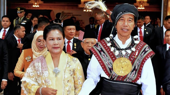 Seperti tradisi tahun-tahun sebelumnya, Presiden Joko Widodo (Jokowi) menggunakan baju adat saat menghadiri Sidang Tahunan MPR. Tahun ini, Jokowi hadir mengenakan baju adat Suku Tanimbar dari Maluku. (Agus Suparto/Setpres)