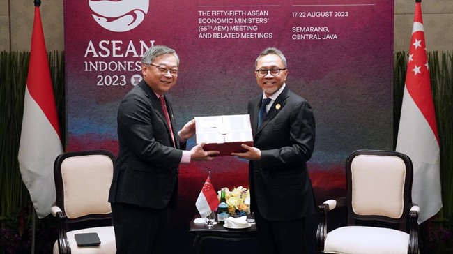 Semarang - Disela pertemuan Menteri Ekonomi ASEAN ke-55, Mendag Zulhas sempat melakukan pertemuan dengan Menteri Gan Kim Yong dari Singapura.