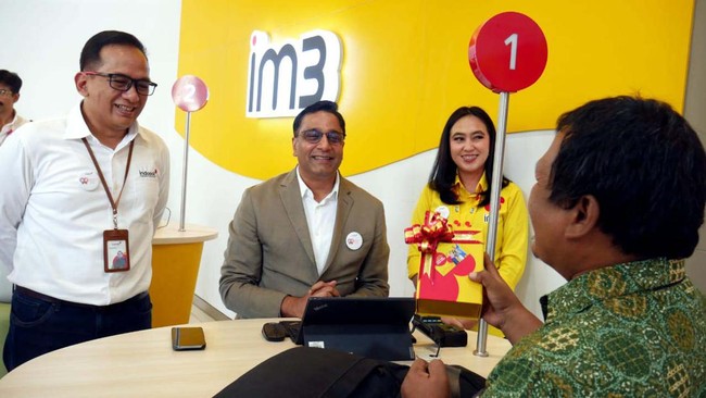 Jakarta - Indosat turut merayakan Hari Pelanggan Nasional. President Director & Chief Executive Officer IOH Vikram Sinha terjun langsung melayani pelanggan di gerai IM3.