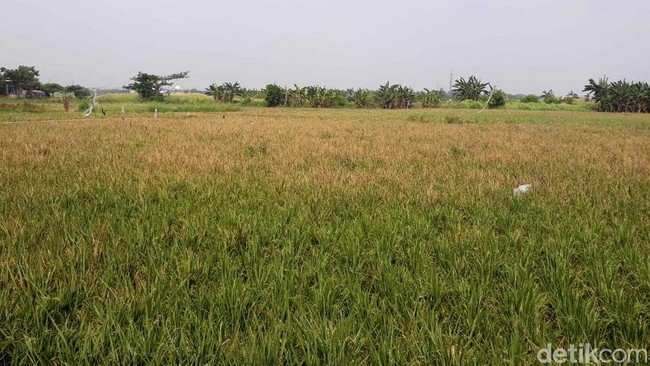 Berdasarkan pantauan detikcom di lokasi, Senin (11/9/2023), hamparan sawah ini terletak di kawasan Rorotan, Cilincing, Jakarta Utara.
