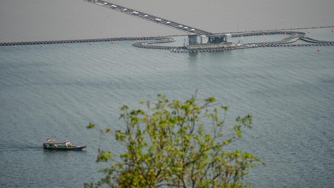 Cianjur - PLTS terapung tengah dibangun di Waduk Cirata Kabupaten Cianjur, Jawa Barat. PLTS terapung ini terdiri lebih dari 340 ribu solar panel.
