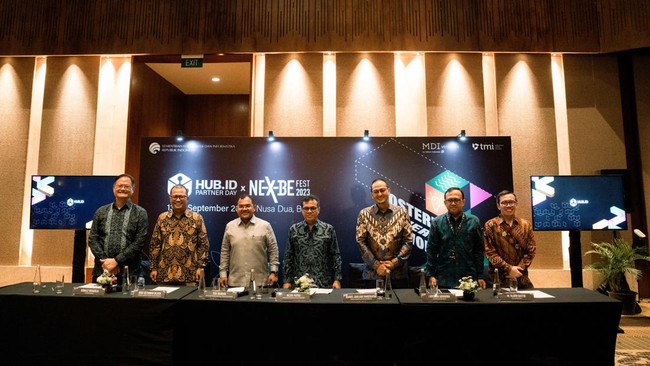 HUB.ID yang dioperasikan oleh Kementerian Komunikasi dan Informatika berkolaborasi dengan MDI Ventures melalui kegiatan HUB.ID Partner Day x Nex-BE Fest di Bali, 13-14 September 2023.