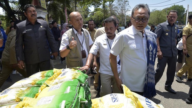 Sumba - Dalam kunjungan kerja ke Sumba, NTT, Menteri Perdagangan Zulkifli Hasan sempat membagikan beras sebanyak 4 ton ke masyarakat.