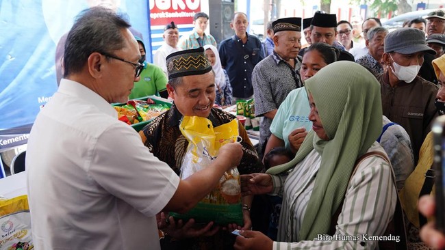 Semarang - Mendag Zulhas menggelar operasi pasar dan bantuan sosial yang digelar di Kantor PW Muhammadiyah Jateng, Semarang.