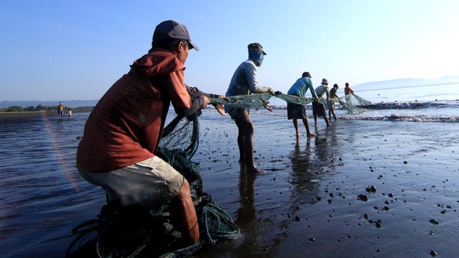 Aksi Nelayan Banyuwangi Tangkap Ikan Pakai Jaring Tarik Pantai