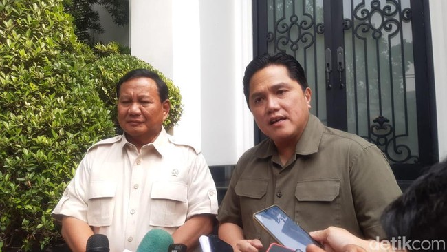 Jakarta - Calon presiden (capres) sekaligus Menteri Pertahanan Prabowo Subianto bertemu Menteri BUMN Erick Thohir siang ini.