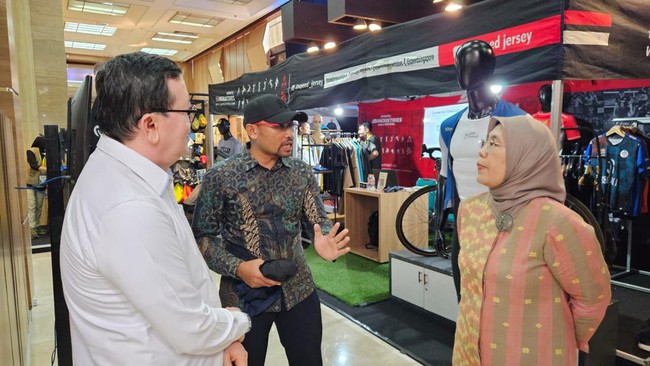 Jakarta - Pelaku UMKM Pakaian dan Peralatan Olahraga berkumpul di Kementerian Perindustrian untuk mengikuti Pameran Indonesia Sport and Active Wear (ISAW). Ini potretnya.