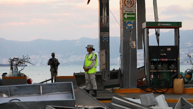 Meksiko - Pascabadai Otis, tempat-tempat penting di Meksiko dijaga ketat oleh tentara. Seperti SPBU dan pusat perbelanjaan, hal ini untuk mencegah penjarahan.