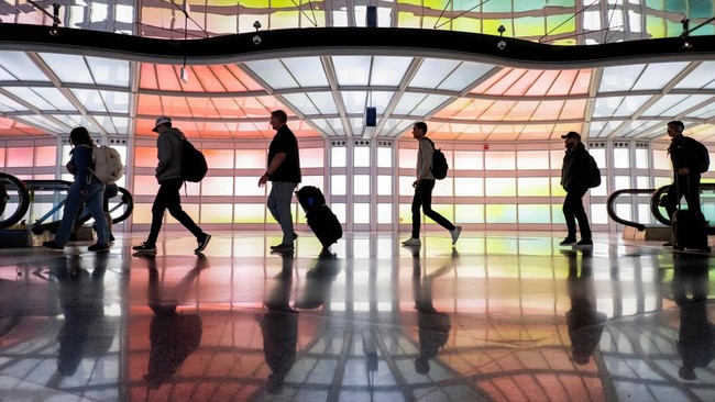 Amerika Serikat - Bandara-bandara di AS sedang menghadapi lonjakan jumlah penumpang pesawat saat libur Thanksgiving. Salah satunya di Bandara Internasional O'Hare, Chicago.