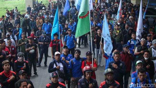 Tunggu Kenaikan Upah, Ribuan Buruh Kumpul di MM2100