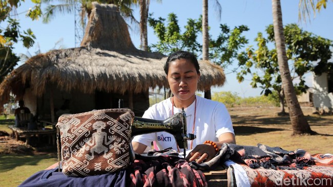 Sumba Timur - Limbah kain dari sisa tenun sering diabaikan. Namun, di tangan terampil Rambu Ana Intan, berhasil menyulap limbah kain menjadi busana cantik bernilai tinggi.