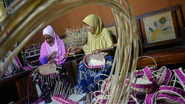 Makassar - Menjelang perayaan Natal dan Tahun Baru, pembuatan keranjang parsel di Makassar meningkat. Permintaan keranjang meningkat hingga 300 buah.