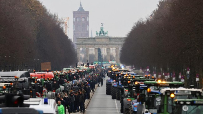 Ratusan Traktor Bajak Kota Berlin Protes soal Subsidi Pajak Kendaraan