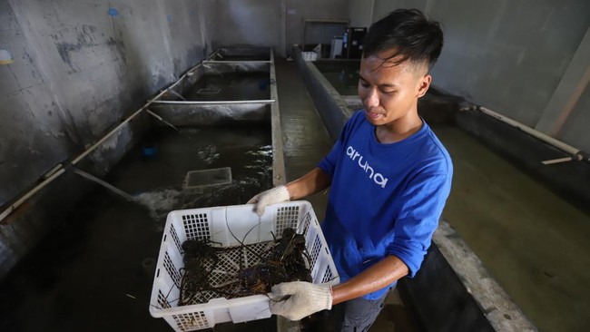 Jakarta - Aruna Hub Ujung Genteng merupakan salah satu tempat penghasil komoditas primadona Lobster untuk memenuhi permintaan pasar global.