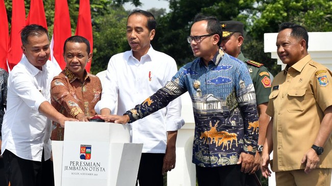 Bogor - Presiden Jokowi hari ini meresmikan Jembatan Otto Iskandar Dinata atau Otista di Kota Bogor, Jawa Barat.