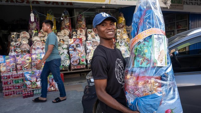 Palu - Menjelang perayaan Natal dan Tahun Baru 2024, sejumlah pedagang parsel musiman bermunculan di Palu, Sulteng. Parsel dijual mulai dari Rp 150 ribu.
